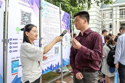 学生参与“你我携手共建智慧校园”的现场采访活动