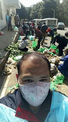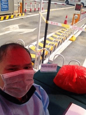 柳嵬同志2月16日报名参加学校疫情防控党员突击队工作,下图是其工作中照片: