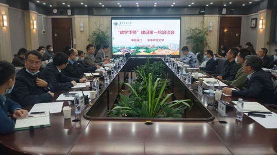 10月15日,校党委副书记查道林在行政楼一楼会议室与中国银行中银金科董事长邢桂伟一行围绕“数字华师”建设进行第一轮洽谈。洽谈会由信息化办公室吴俊文主任主持。