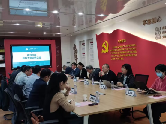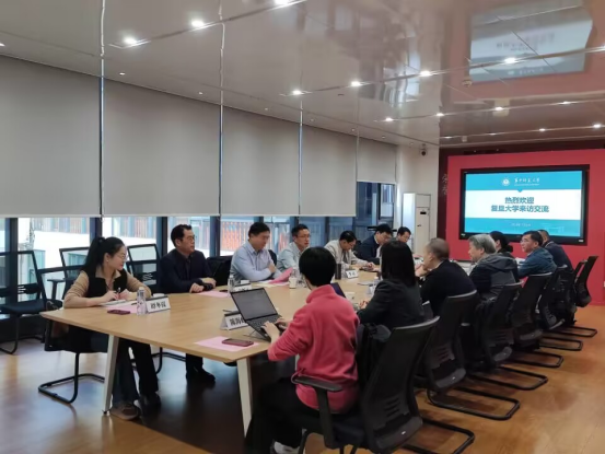 2023年11月7日上午,复旦大学陈焱一行七人来我校进行专题调研和座谈。座谈交流会在南湖综合楼1161智慧党建展厅举行,党委学生工作部副部长李刁、信息化办公室主任吴绍靖、人工智能教育学部副部长吴小平、本科生院副院长卢新元、研究生院副院长叶飞、信息化办公室副主任谭冬霞及党委学生工作部副处长鲍新龙参会。会议由吴绍靖主持。