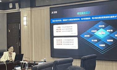 在会议第二阶段,希嘉公司代表从用户登录、授权用户确权角色、模型确权、代码表确权以及备注五个方面介绍了数据调研与治理情况。科大讯飞袁婉君对高校大模型智能服务解决方案进行汇报。随后,吴绍靖主任补充强调了数据治理的客观性、准确性、一致性的重要意义,并说明业务知识库建设工作、“华师小百科”系统优化的工作将进一步提升我校师生的获得感、幸福感、体验感,使各职能部门提能增效,为教育事业的数字化转型奠定坚实基础。