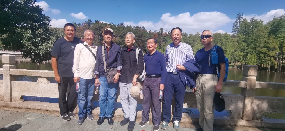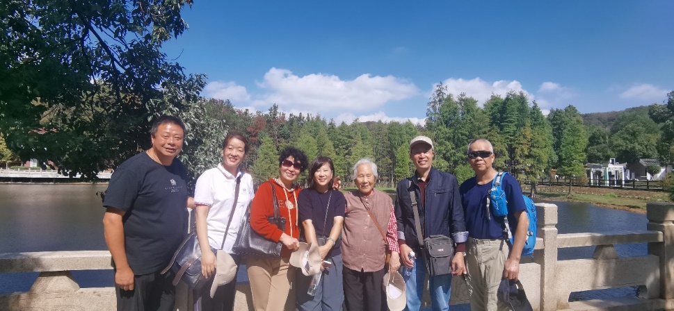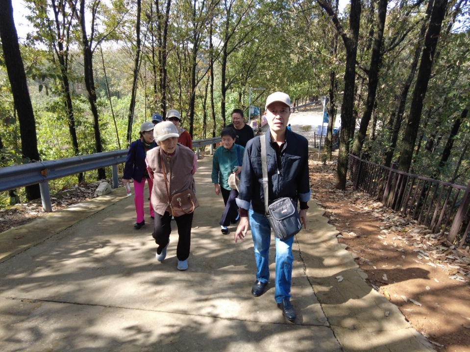 武汉九真山国家森林公园是国家4A级旅游景区,景区植被繁茂、沟壑纵横、山泉潺潺、高山湖泊,景色迷人。经过一个多小时的车程到达蔡甸九真山国家森林公园,在金秋的艳阳和凉爽的秋风中,老同志们乘坐景区观光游览车来到山上,登扶云梯到达山顶锁情台,远眺山乡田园秋景,留下美丽的倩影。下山来到连理湖边,视野开阔,湖光山色风景迷人,老同志们从湖边茶园中穿行,漫步在湖边林荫小道,一路谈笑风生,回忆往日的趣事乐趣浓浓,开心的笑容洋溢在他们的脸上,邱帆同志风趣的话语更为这次秋游增添了欢乐的氛围,一天的游览在大家的欢声笑语中结束。