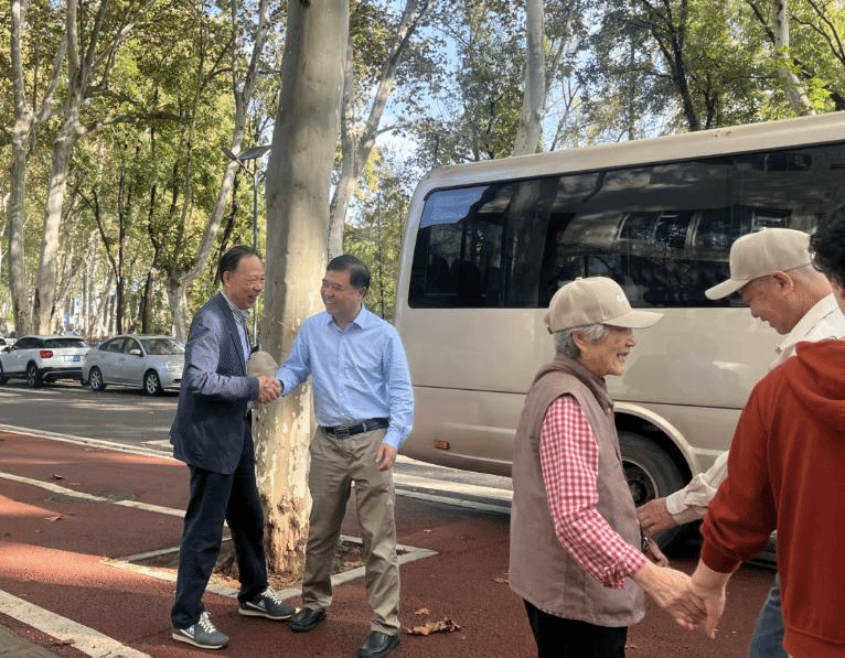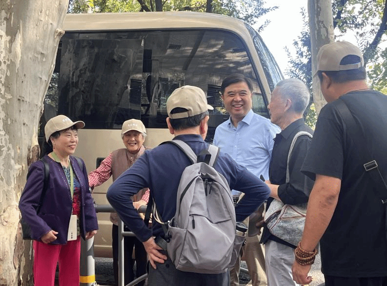 一场秋雨过后空气格外清新,蓝天白云、风和日丽,老同志们兴高采烈地来到校务服务中心大厅,大家见面后格外亲切,互相问候。信息化办公室主任吴绍靖向老同志们进行问候和交谈,他简短地介绍了学校信息化工作情况,询问老同志的身体状况和生活情况,鼓励他们多出去走走,欣赏美景愉悦身心。随后吴主任和办公室主任成雯将老同志们送上车,并叮嘱随行工作人员照顾好老同志,确保安全,让老同志们的游玩开心愉快。