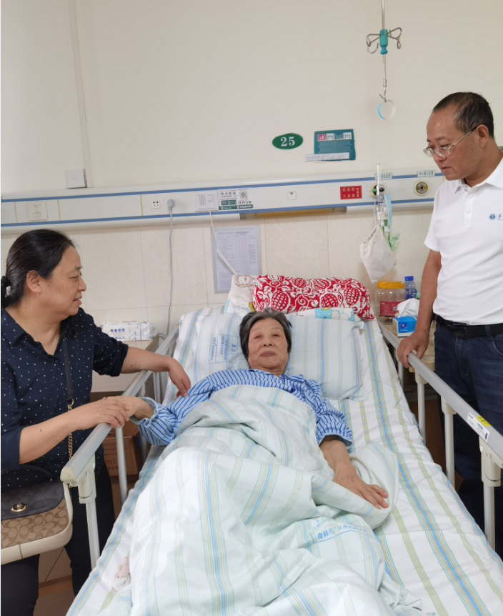 2024年10月11日重阳节,单位领导委派李荃、刘合富同志前往中南医院看望生病住院的退休职工黄敏,他们详细询问了黄老师的病情和身体康复情况,并转达了单位领导的关心和节日问候,鼓励黄老师战胜疾病争取早日康复。黄老师住院近一年了,她对单位的领导和同志多次去医院看望她表示了感谢。