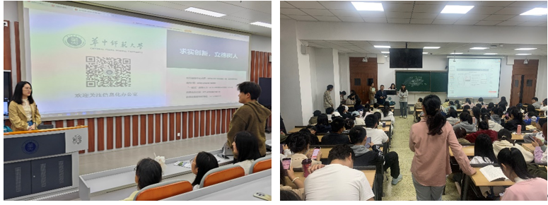 为推进学校教育数字化转型工作,提高校园信息化服务水平,帮助新生充分利用智能化教育资源,让智慧应用全面融入校园生活。在学工部的大力支持下,信息化办公室宣讲团队于10月13日、10月20日、10月27日晚点名时段走进23个学院,面向2024级本科新生开展校园信息化服务进宣讲活动。