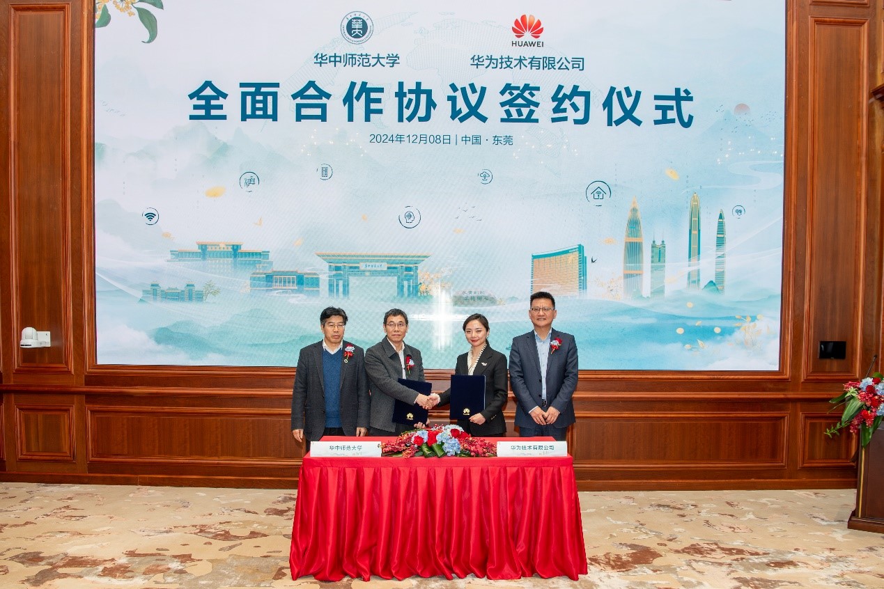 12月8日上午,我校与华为技术有限公司在东莞松山湖华为基地签署全面合作协议。校长彭双阶,副校长李鸿飞,华为技术有限公司全球公共事业系统部总裁李俊风,华为技术有限公司湖北政企业务部副总经理杨莉以及校企相关部门负责人参加签约仪式。