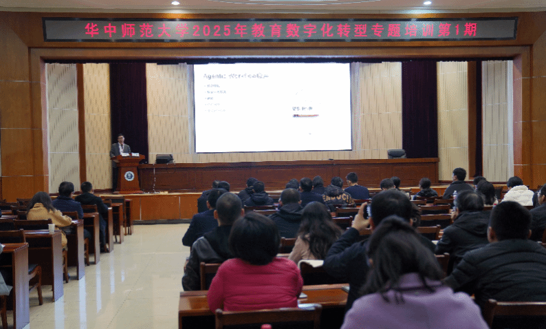 (通讯员 杨黎) 3月12日,学校2025年首期教育数字化转型专题培训在科学会堂一楼报告厅举行。本次培训邀请到清华大学大湾区数字经济研究中心特聘研究员文德、信息化办公室高级工程师解攀科担任主讲嘉宾。学校二级单位分管信息化工作领导和信息化工作联络员线下参会,约500人通过线上直播同步观看。培训由信息化办公室主任吴绍靖主持,并得到了中国移动通信集团湖北有限公司的大力支持。