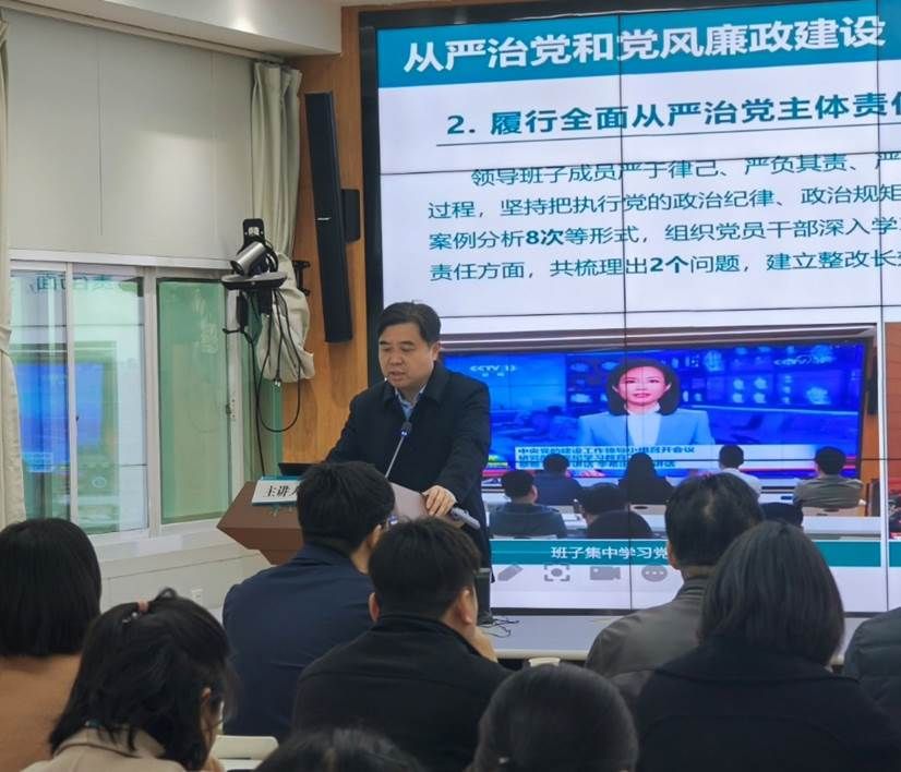 随后,领导班子成员吴绍靖、刘爱民、黄凯依次进行述职汇报,结合各自分管工作,围绕履职尽责、廉洁自律等方面进行个人述职述廉汇报,全面总结工作成果,查摆问题不足,并提出改进思路。