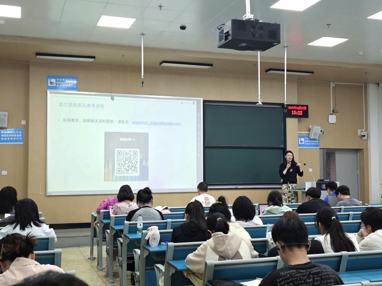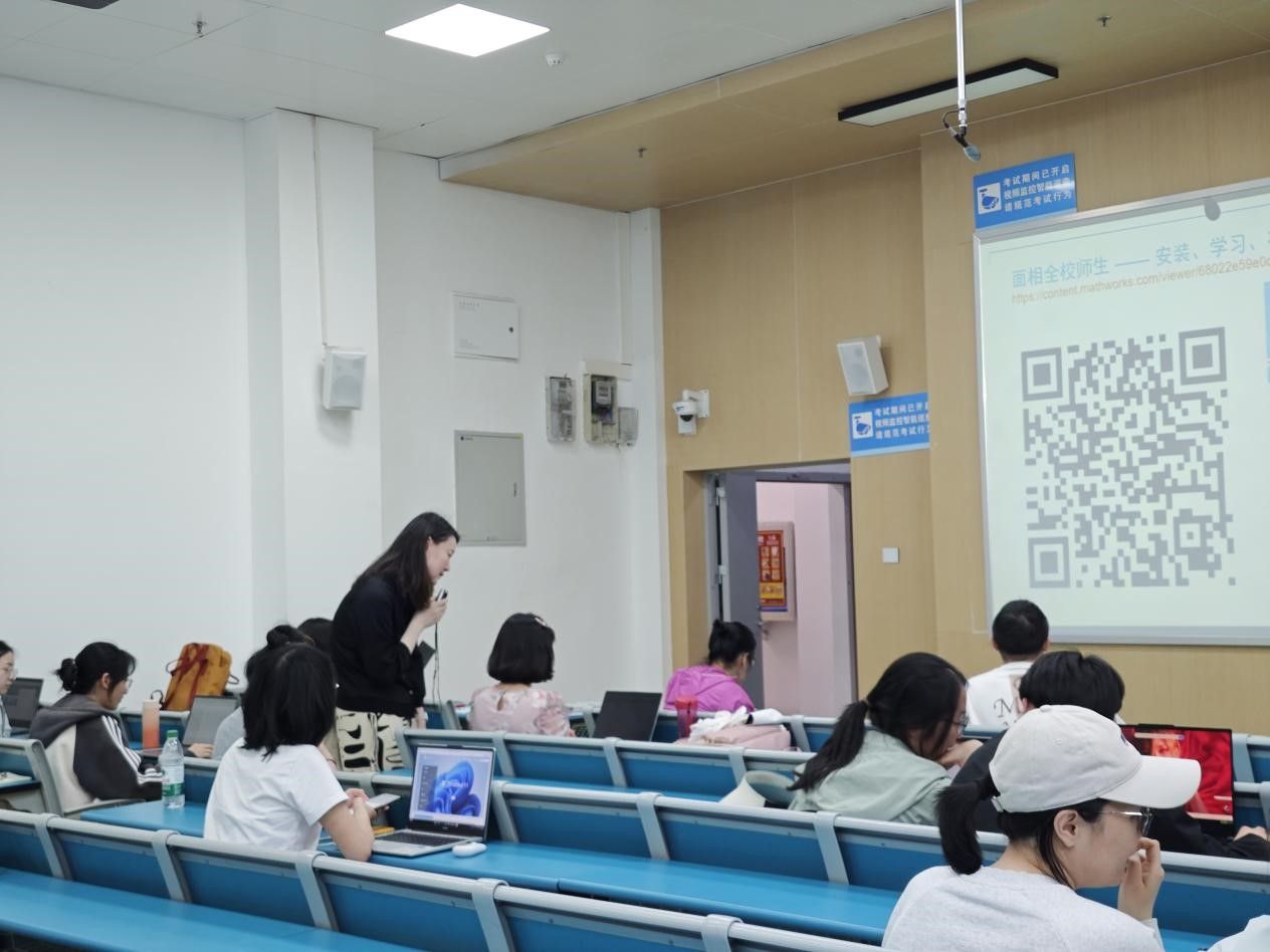 讲座现场气氛热烈,阮卡佳老师围绕MATLAB在深度学习中的应用、与大语言模型的融合,以及教学与科研资料分享等三个核心议题展开讲解。她通过播放自己精心录制的MATLAB操作视频,生动直观地向同学们展示了该软件的强大功能,让在场学生对MATLAB的实用性有了更深刻的认识。