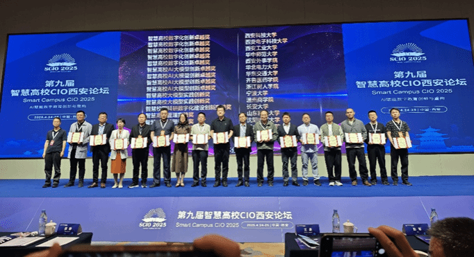 论坛以“AI赋能数字教育创新与重构”为主题,聚焦智慧校园、智慧教学、智慧科研、智慧课堂、智慧管理等热点话题,分享智能化技术在高校教育中的前沿应用场景,推动信息技术与教育的深度融合。我校凭借在数字化转型中的创新实践,获评第九届智慧高校CIO西安论坛“智慧高校数字化创新卓越奖”,信息化办公室负责人被评为“智慧高校数字化转型先锋人物”。