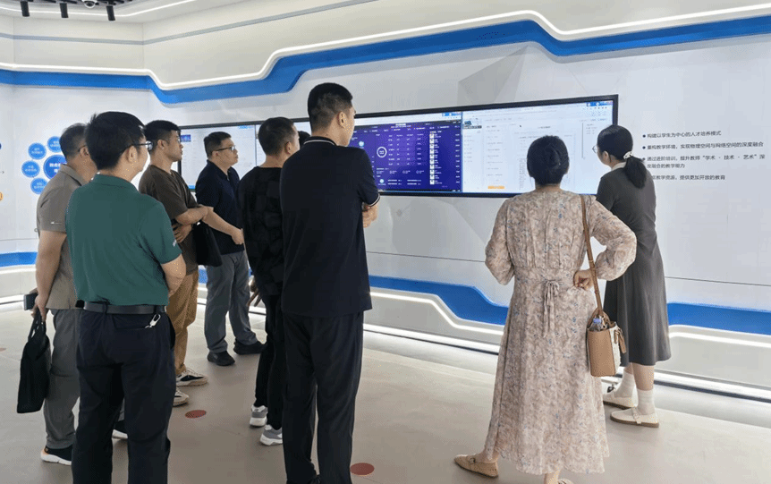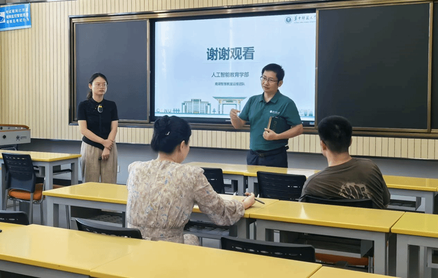 座谈会开始前,国防科技大学代表一行重点参观了我校南湖综合楼智慧教室和教育大数据应用技术国家工程研究中心。通过实地参观,他们深入了解了我校在“人工智能+教育”领域推进教学改革、开展科研攻关所取得的成果。