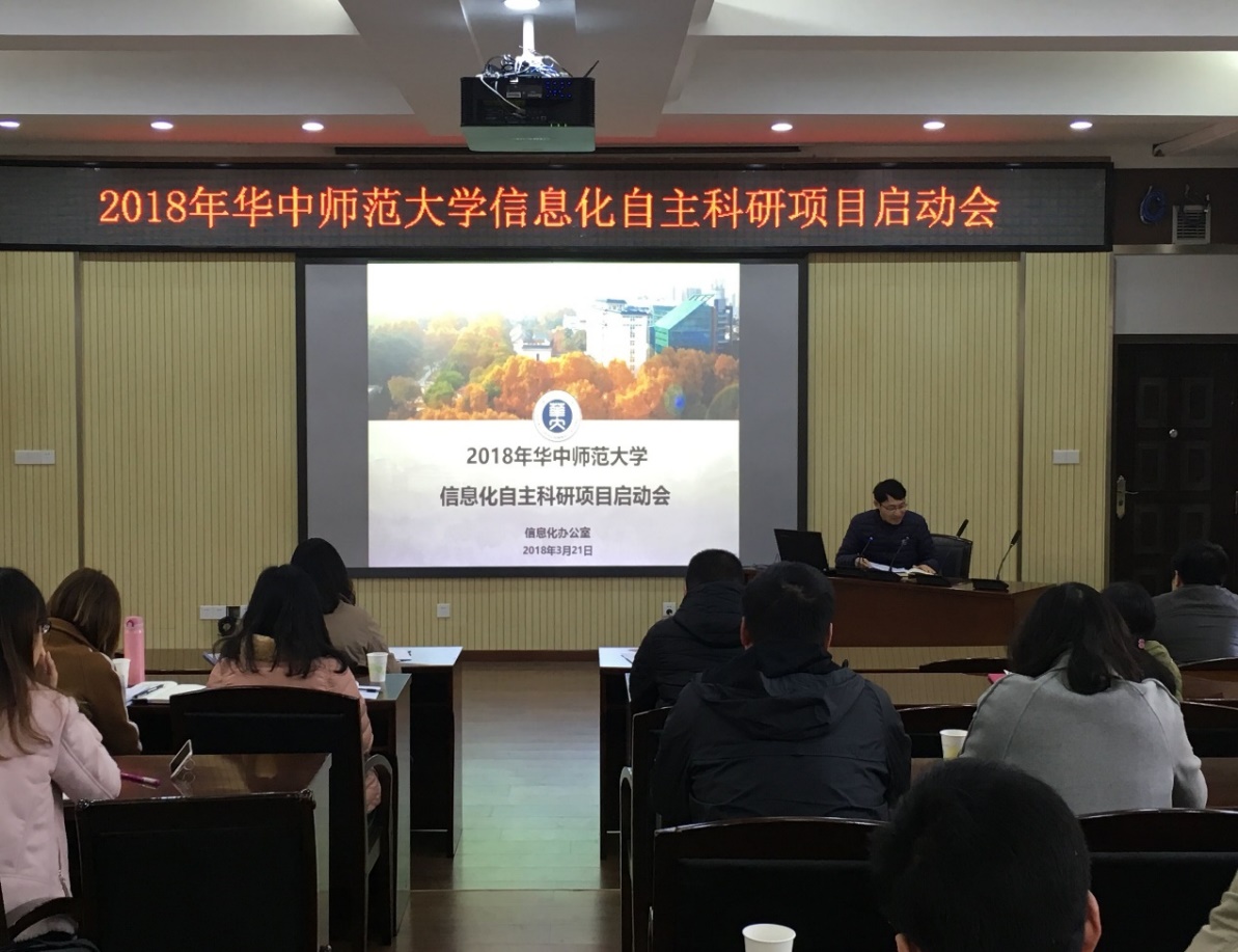 为进一步激发全校师生参与信息化建设的热情,引导师生正确开展信息化自主科研项目,3月21日下午,信息化办公室在行政楼二楼会议室召开2018年华中师范大学信息化自主科研项目启动会,信息化办副主任吴小平与谭冬霞、项目管理与发展部部长邓飞、科研部周汉鸣以及50多名项目负责人与会,会议由谭冬霞主持。