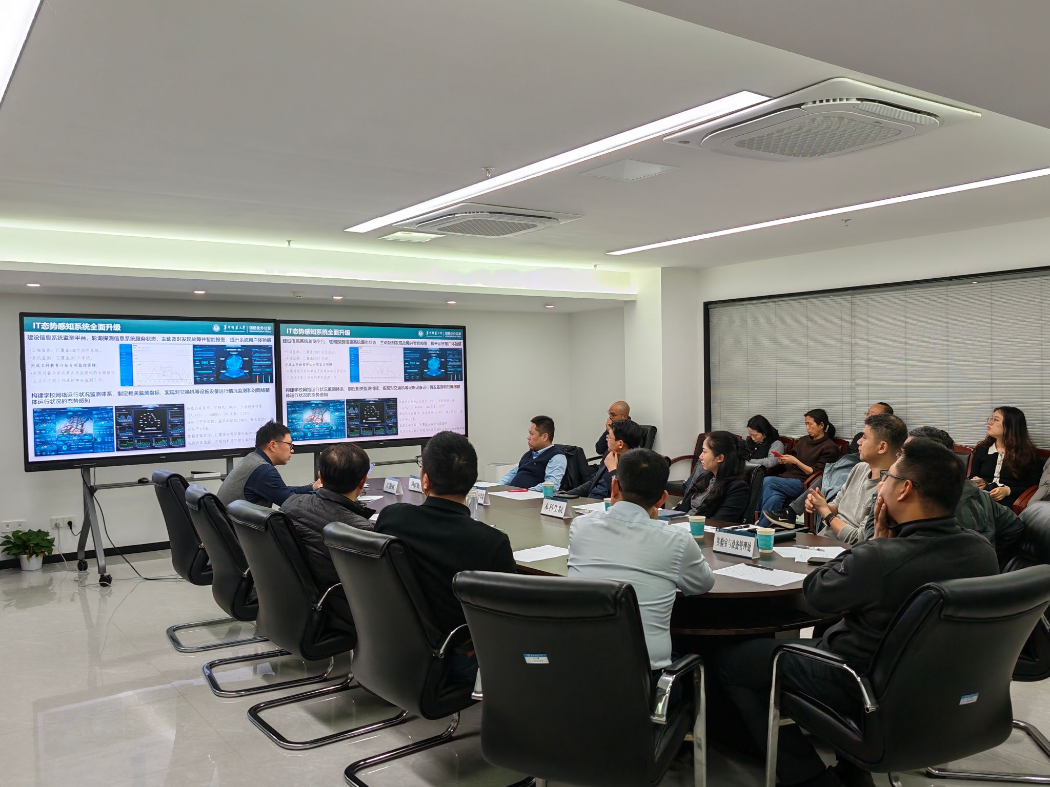 大会第二阶段为部门考评环节。信息化办公室下属综合管理办公室、网络运行中心、数据系统中心、教育技术中心、校务服务中心、校园卡管理中心等6个部门汇报人,分别就2025年度本部门工作开展情况、工作成效等内容进行系统汇报。本次部门考评邀请人工智能教育学部、本科生院、人事处、科技处、实验室与设备管理处相关领导担任评委,严格按照既定标准有序开展考评工作,确保考评结果公平公正、客观严谨,充分发挥考评导向作用,推动各部门持续提升数字化服务质效。